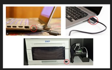 Set up the laptop by connecting the power and USB printer cables and turn on the laptop and printer. π₯οΈβ‘