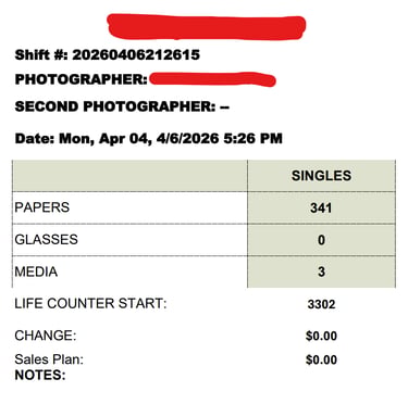 Cash in Drawer: If thereβs any change (cash bills in a transparent envelope), take a photo and count the cash. π΅